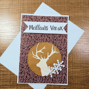 Carte Meilleurs Voeux tête de cerf fond rouge fleuri